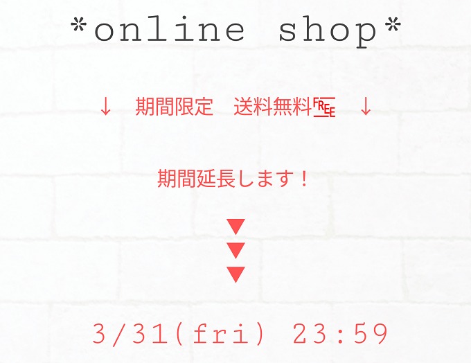 2月いっぱいとしておりましたオンラインショップの送料無料ですが