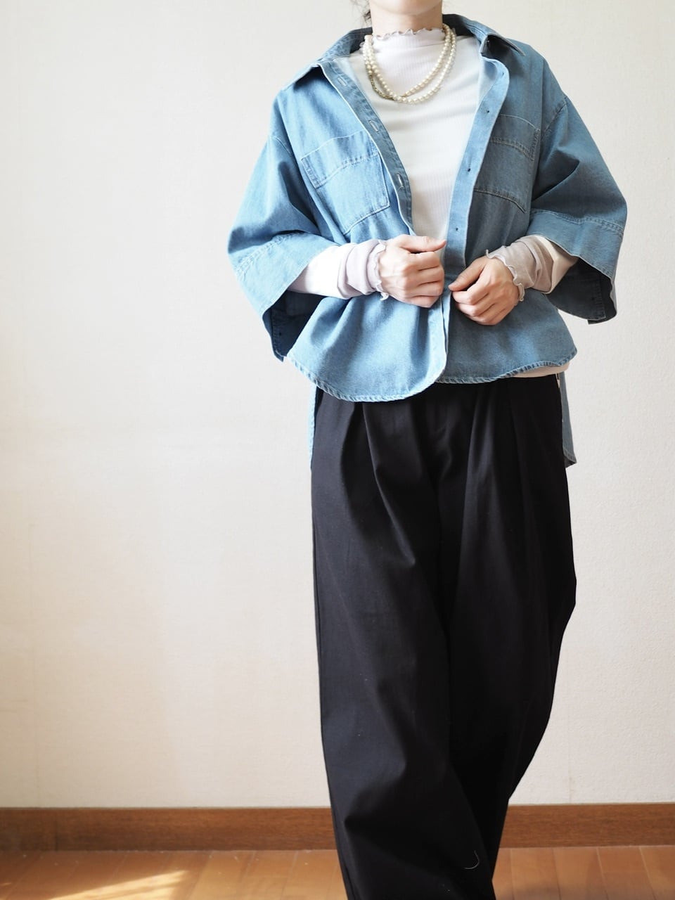 さまざまなスタイリングに合わせやすく、重ね着にも最適です。
