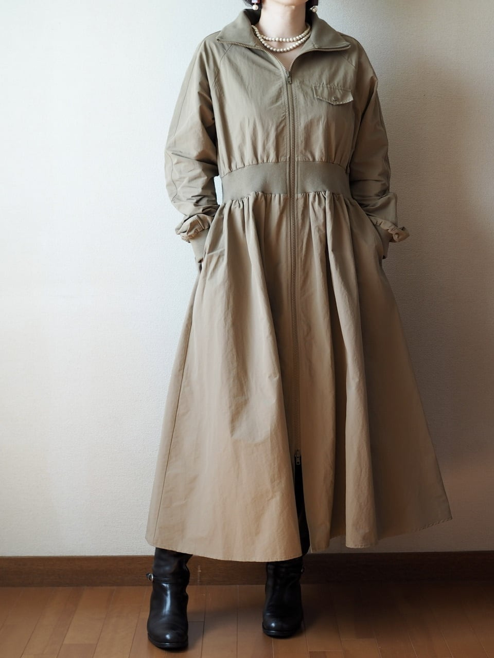 シャカシャカコートワンピース <カーキベージュ>