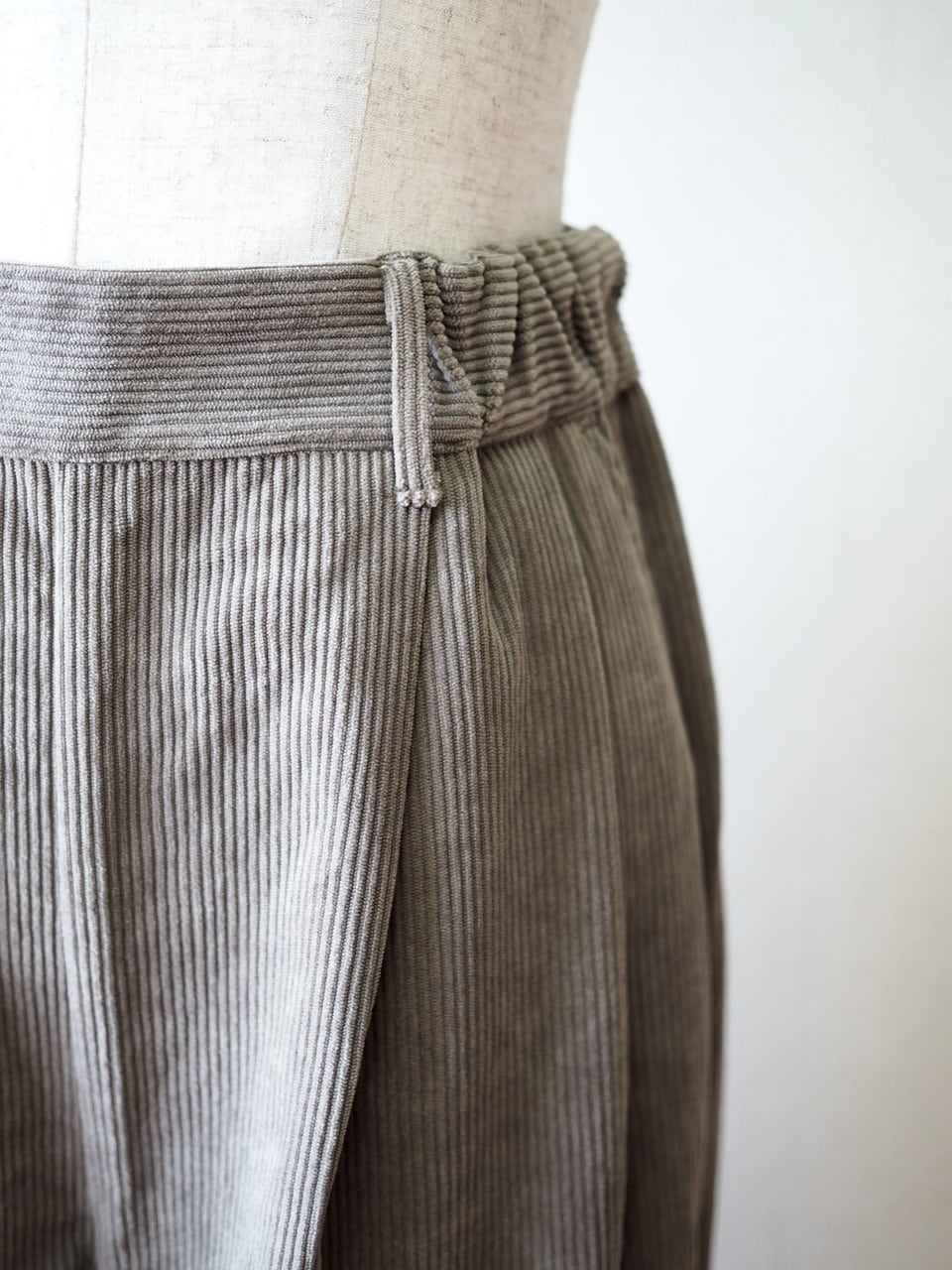 タック入りデザインに、裾にはダーツが入り足元すっきり。