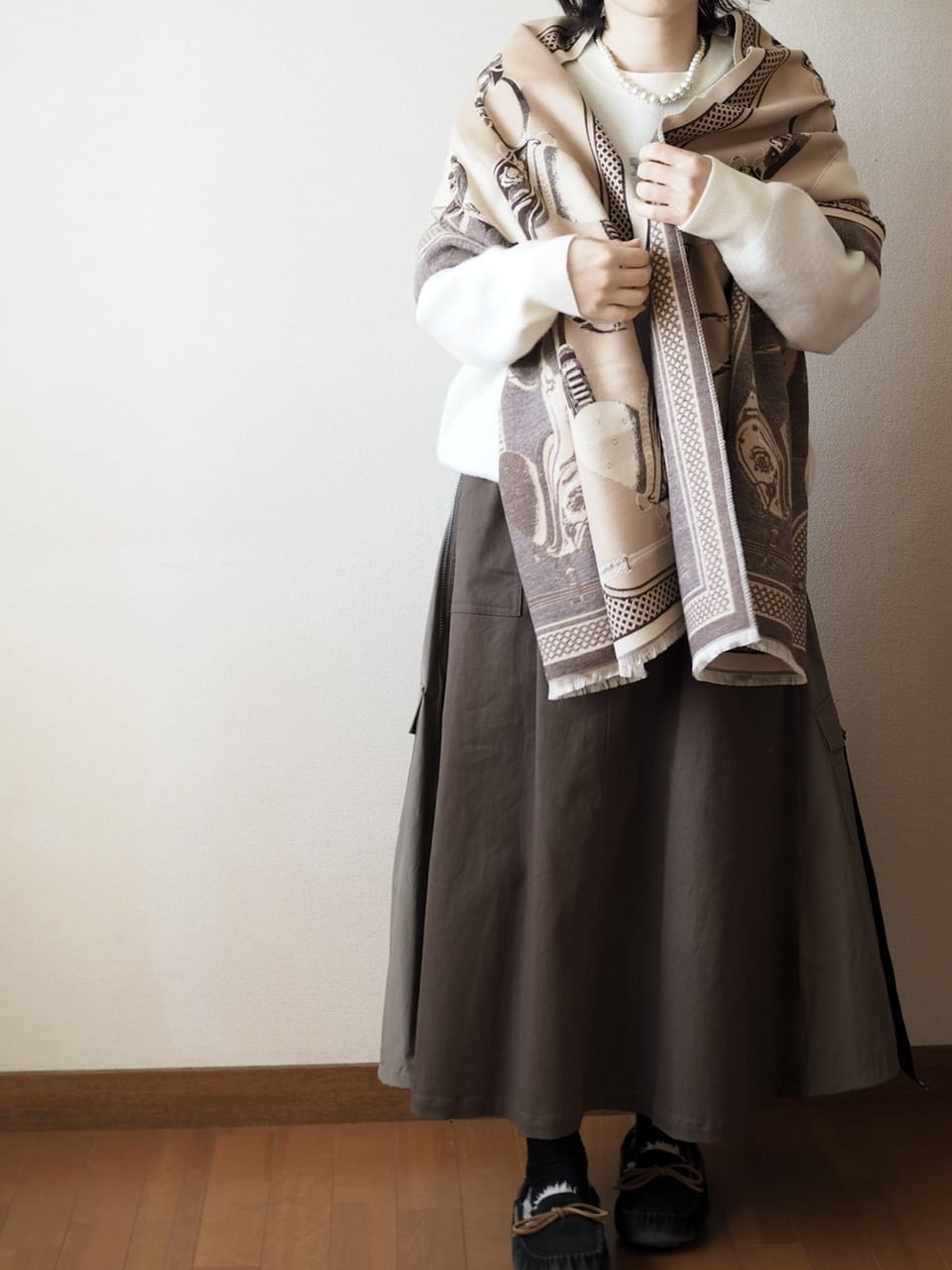 大判なのでくるりと巻くと暖かく、これからの季節にも◎