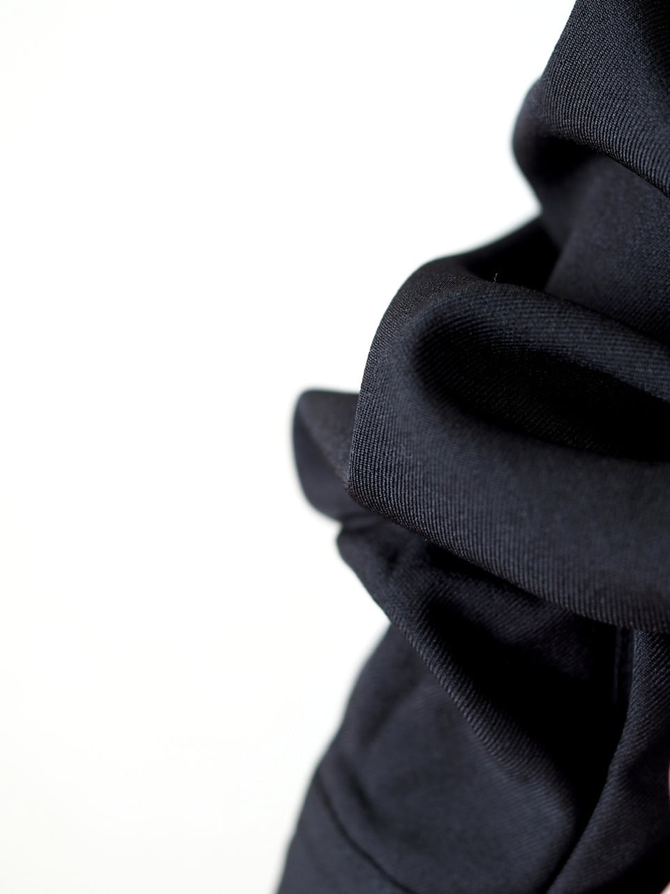 前中心にタックが入り、動きのある立体的なシルエットが◎