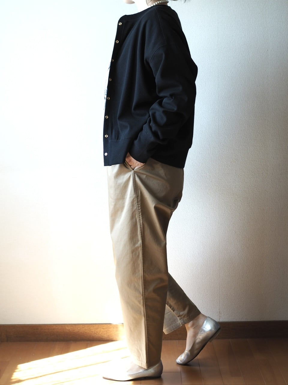 ゴールドのハトメボタンできちんと感もあって◎