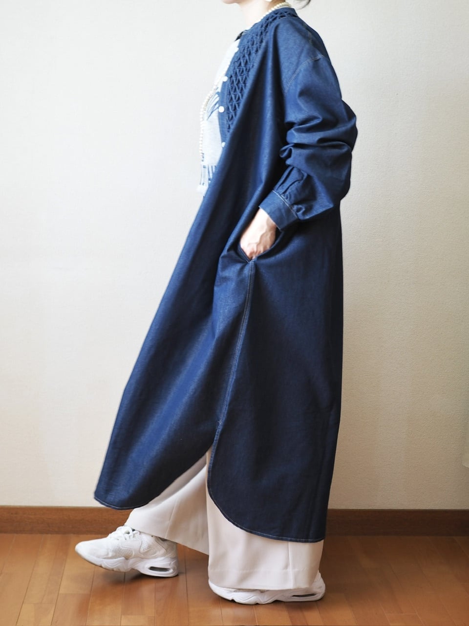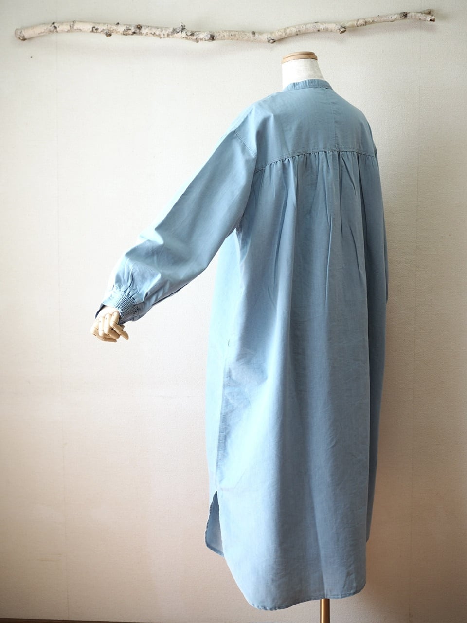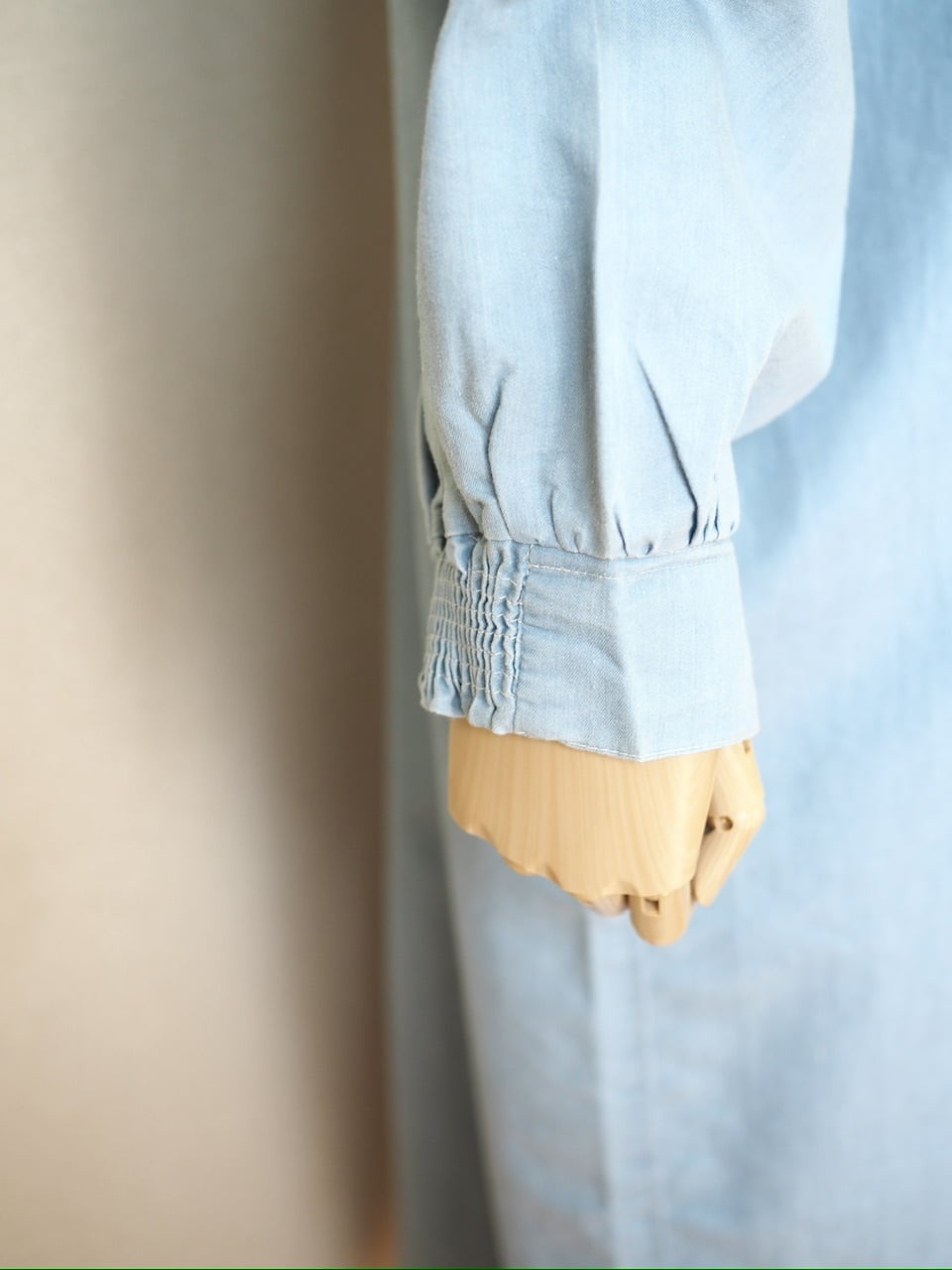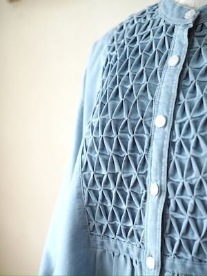 スモッキングデニムワンピース <ブルー>