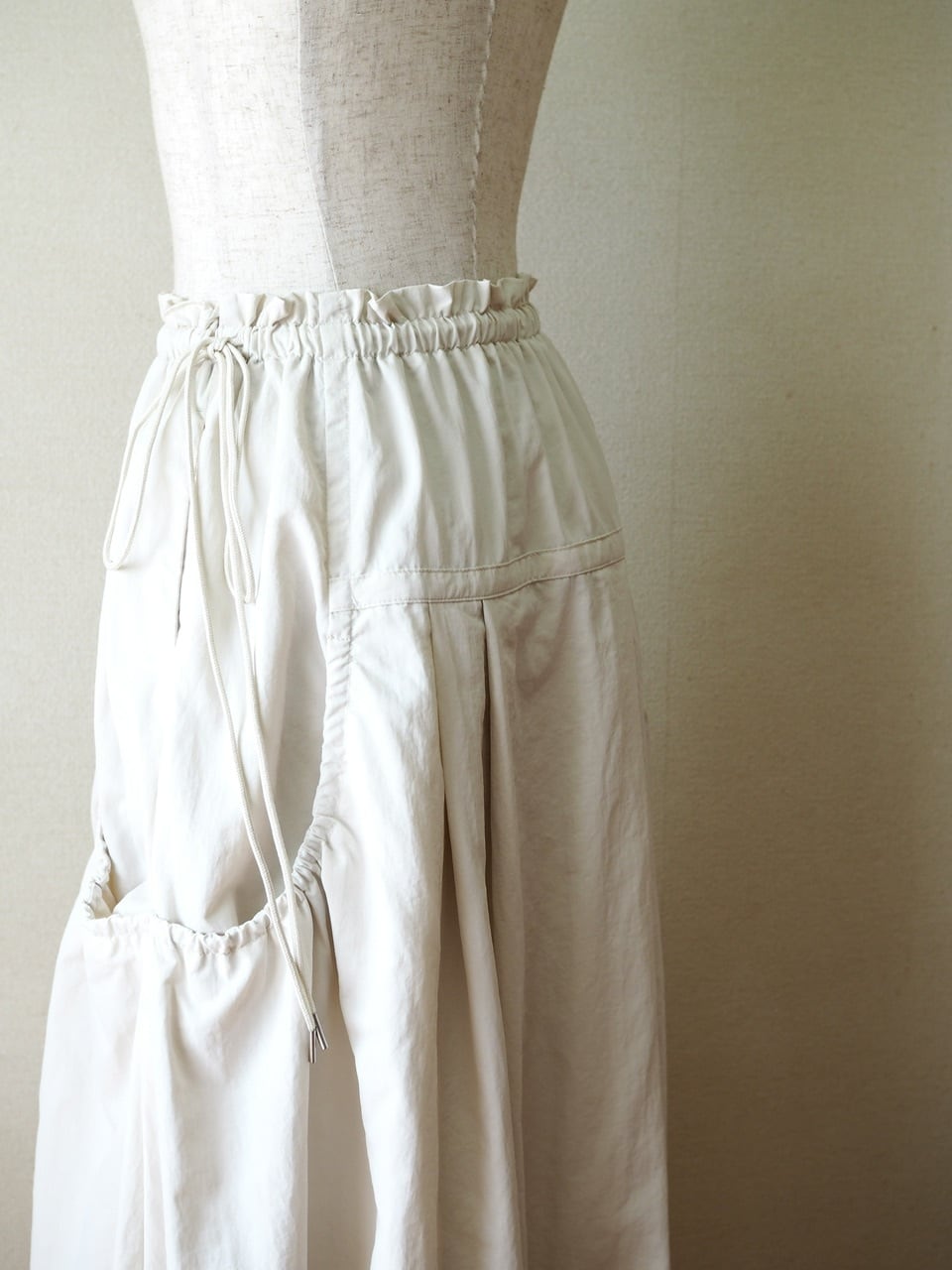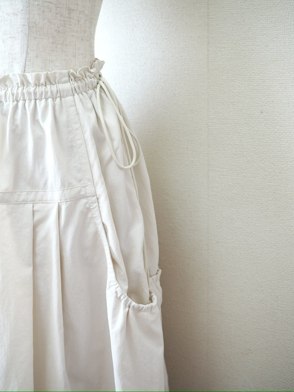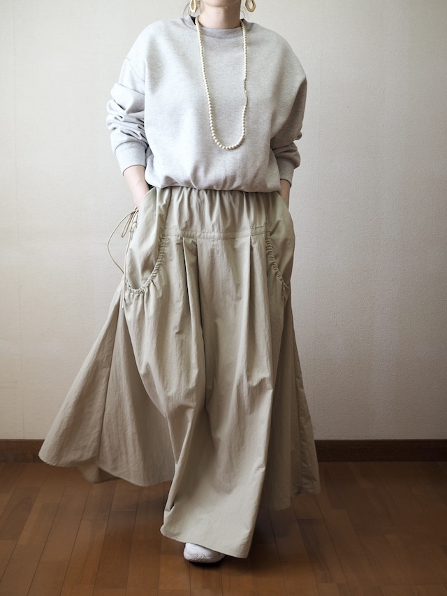 軽やかなナイロン素材のロングスカート 。