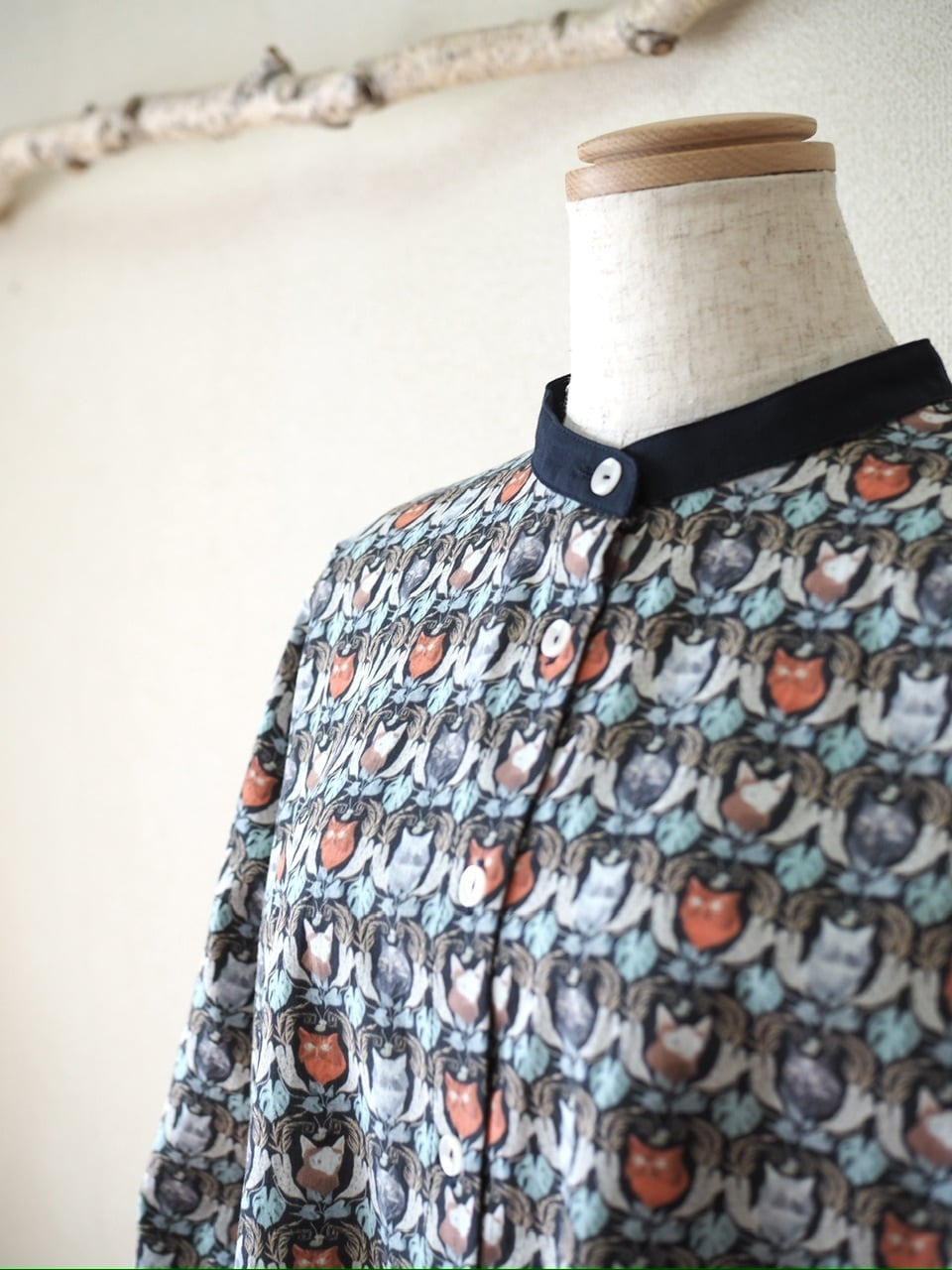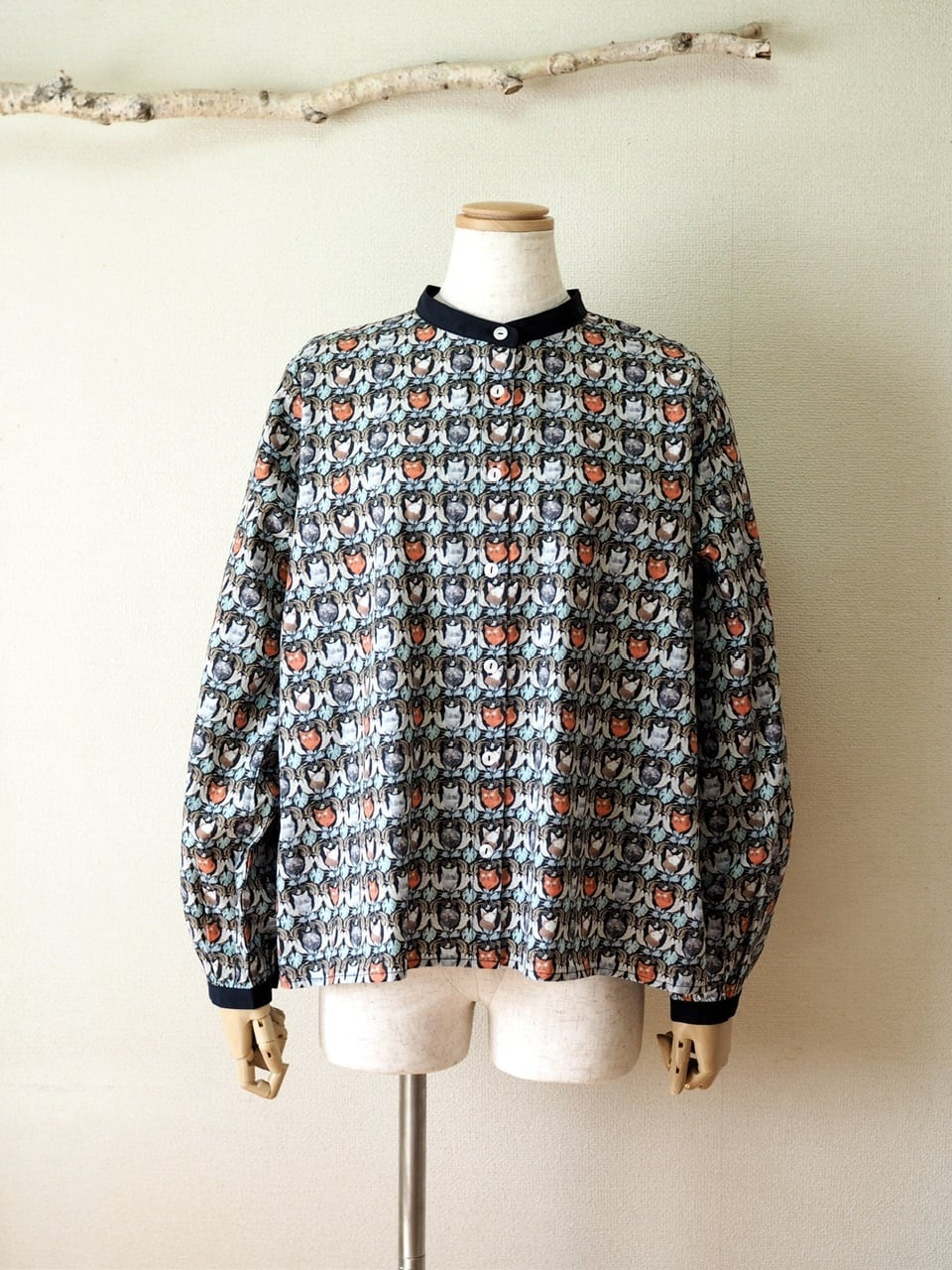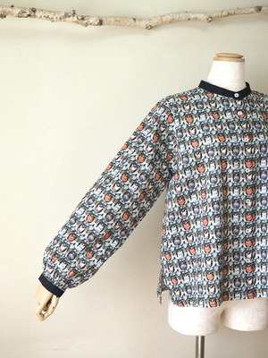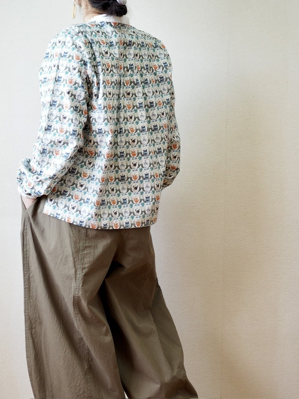 猫好きにはたまらない、猫柄プリントがかわいいブラウス。