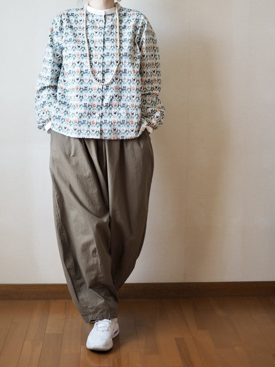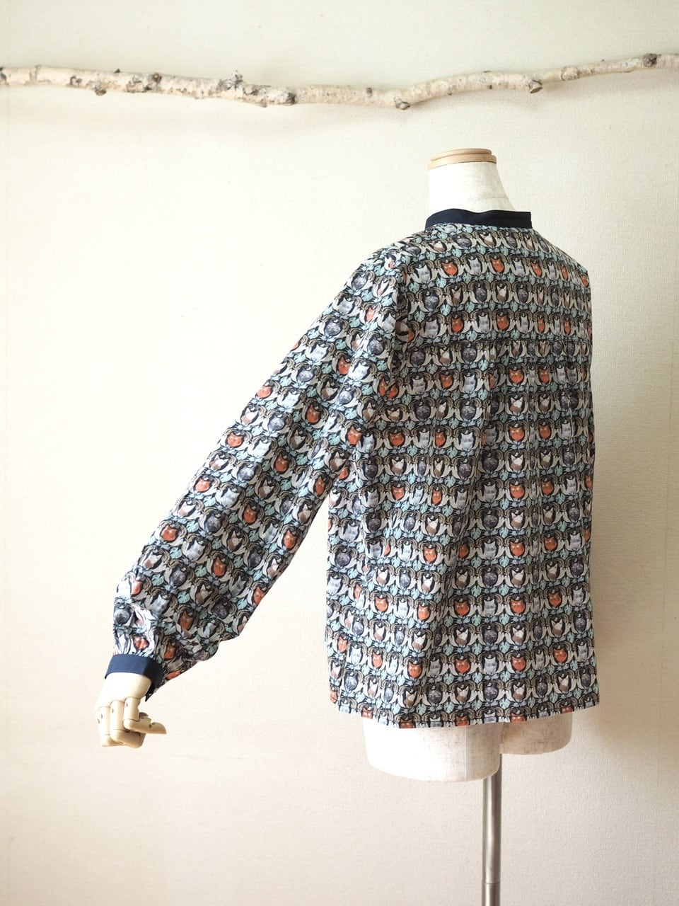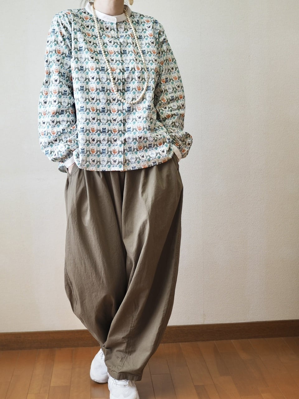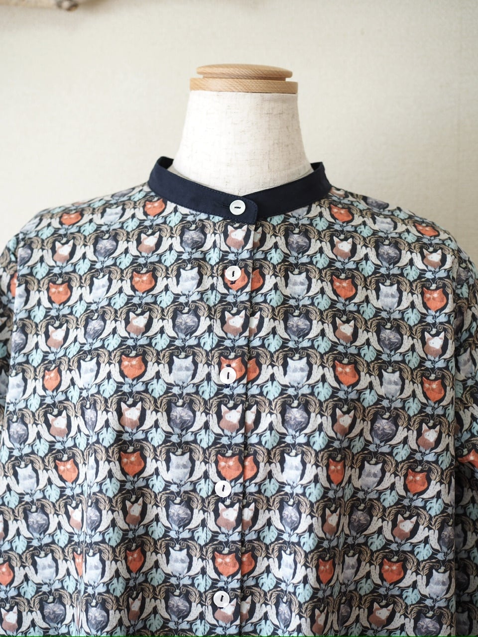 猫好きにはたまらない、猫柄プリントがかわいいブラウス。
