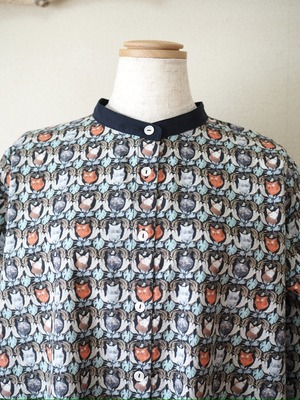 Catプリントブラウス <ネイビー>