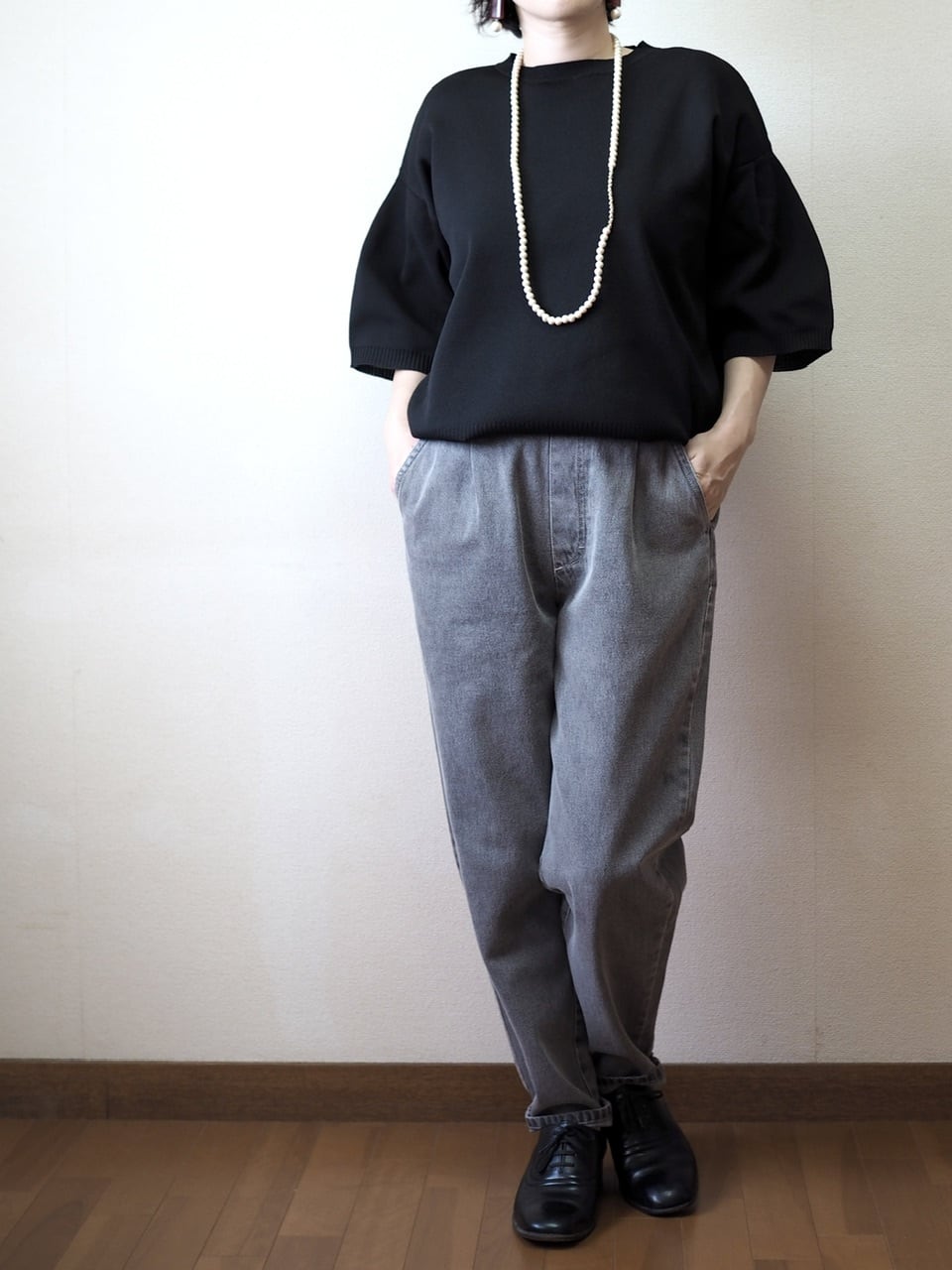 裾が細くなっているテーパードタイプですっきりと合わせていただけます。