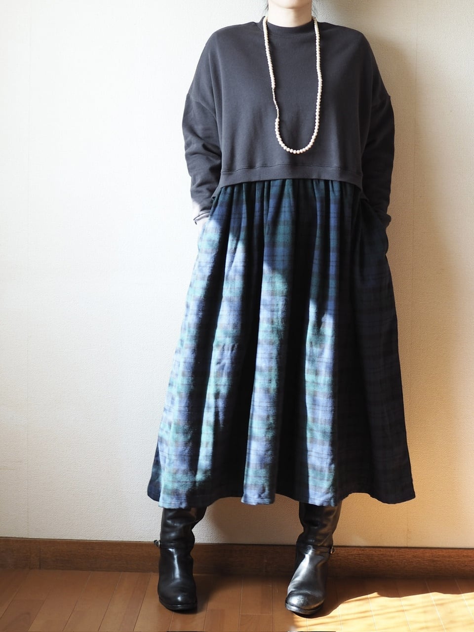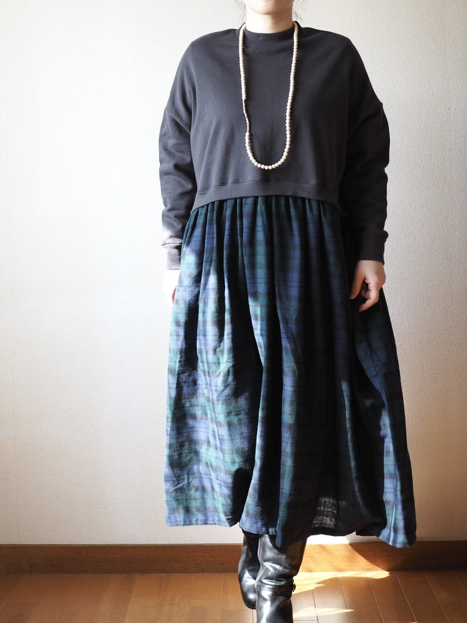 身頃はカットソー生地、スカートはチェックのネル生地でかわいいです♡