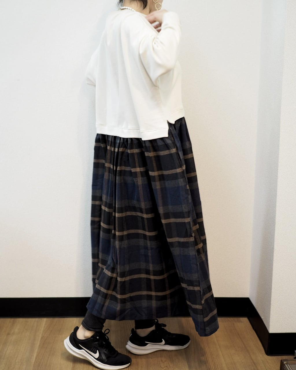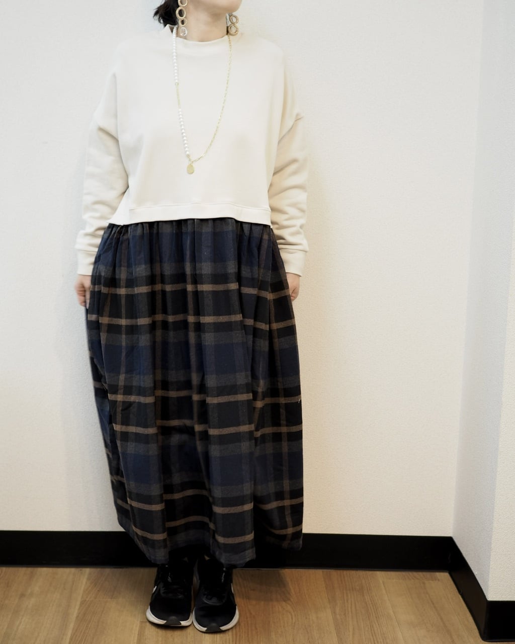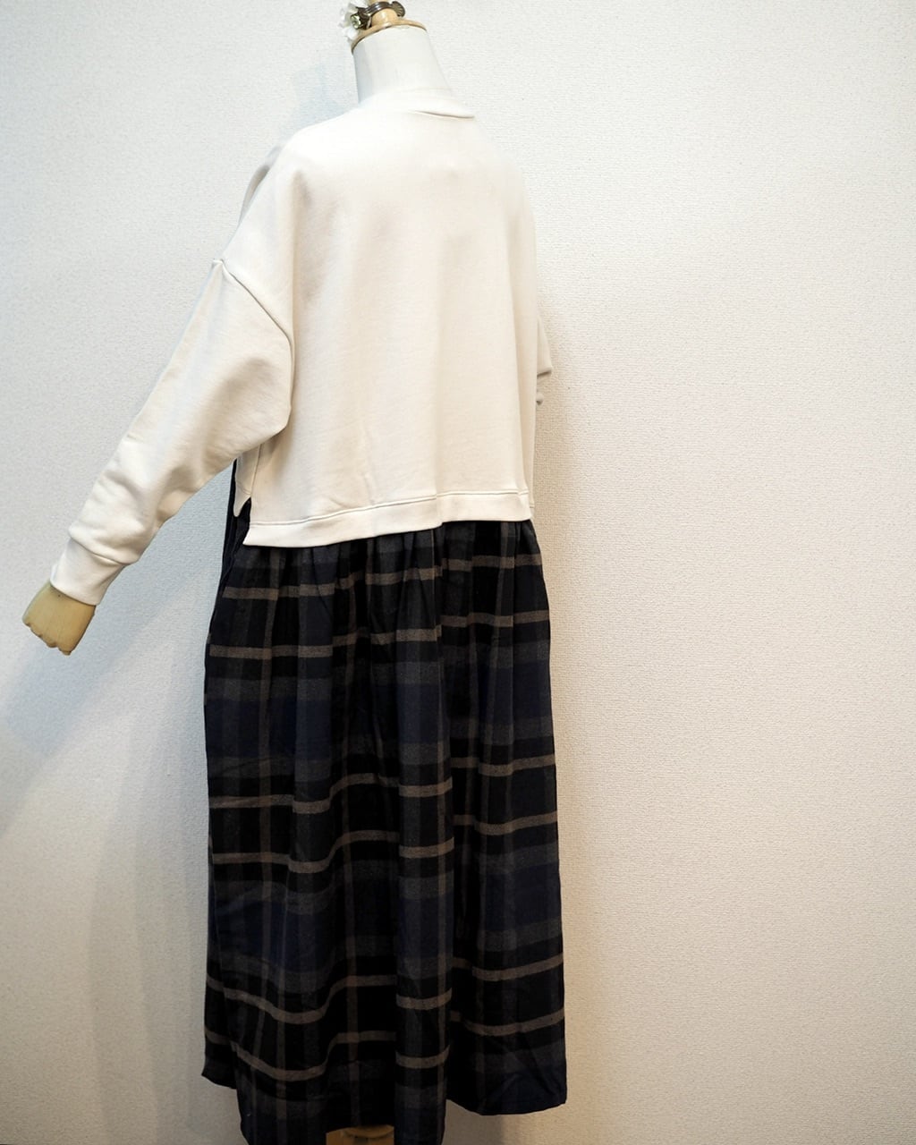 身頃はカットソー生地、スカートはチェックのネル生地でかわいいです♡